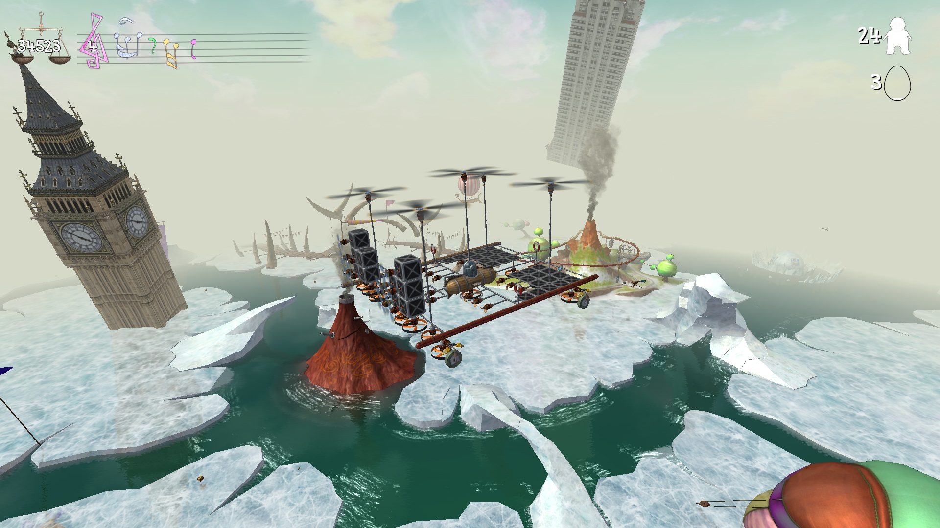 20 несущих винтов позволяют мгновенно набрать или сбросить высоту, а также унести практически неограниченное количество награбленного добра!